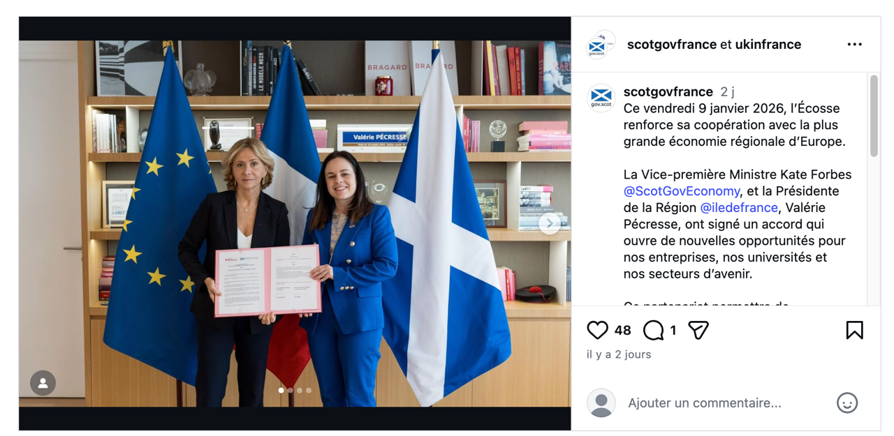 January 2026A new partnership agreement between the Scottish Government and Île-de-France has been signed in order to boost the economy and climate action. The signatories were Valerie Pecresse, the President of the greater Paris region (Ile de France) and Kate Forbes, Deputy First Minister of the Scottish Government. It is hoped, by our European Cultural Route, that this partnership will lead to opportunities for more young people to come to Scotland to walk on the Stevenson Way and learn more about the history and culture of Scotland. |